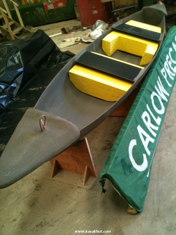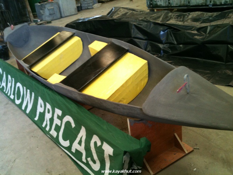 hey guys this is a concrete kayak we made in the precast concrete plant where i work as a special request order for a company in england who plan to race it in a comp this weekend its made completely of concrete reinfored with nylon fibres it weighs about 140 or 150 kilos and it FLOATS.